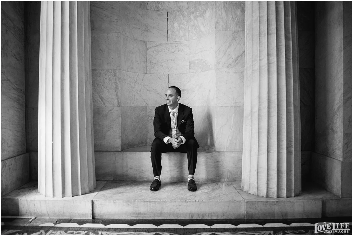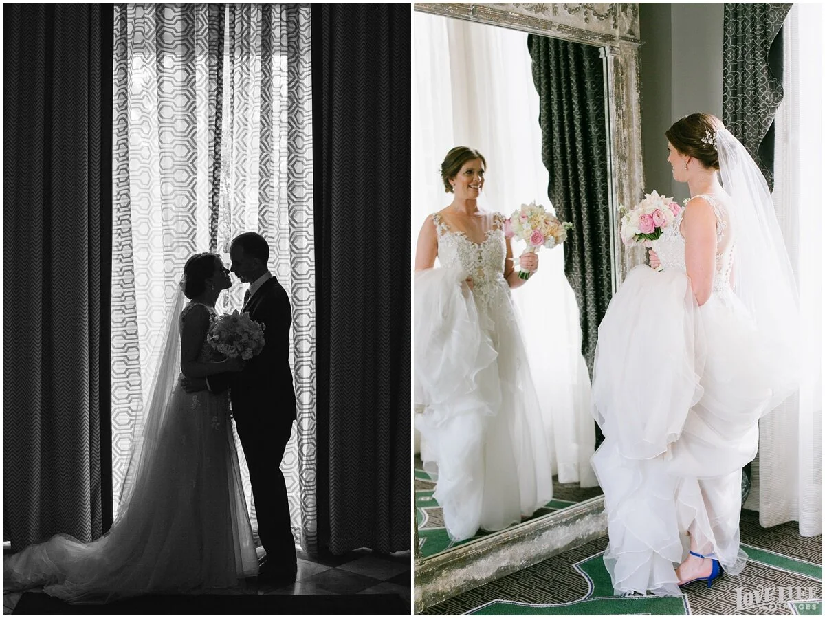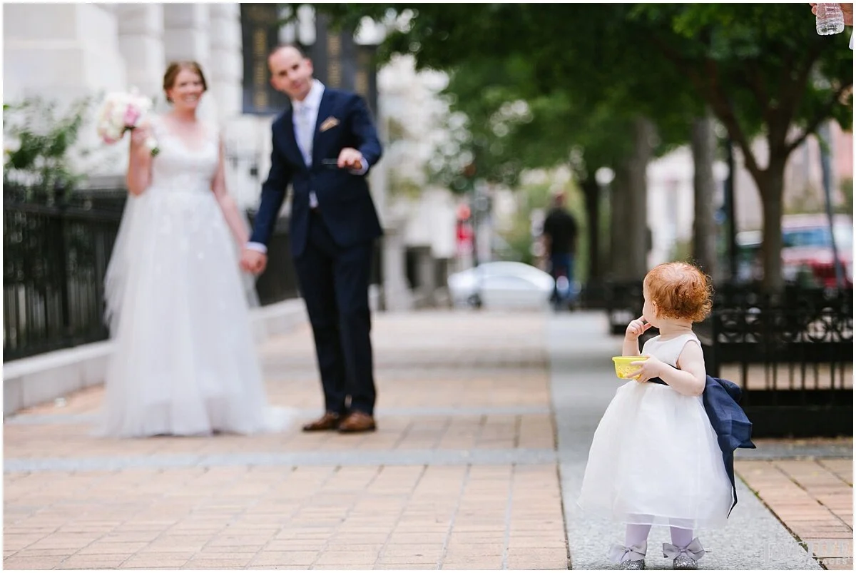 Ellen + Jeff had a beautiful wedding at Hotel Monaco in Washington, DC. They decided to do a first look to take the pressure off and add another memorable moment to their day. After the first look, we strolled around the grounds of the Hotel Monaco and the National Portrait Gallery to do more pictures before heading to Dahlgren Chapel at Georgetown University to say their “I dos”. The families & friends then celebrated with eating, dancing and laughing into the evening.
