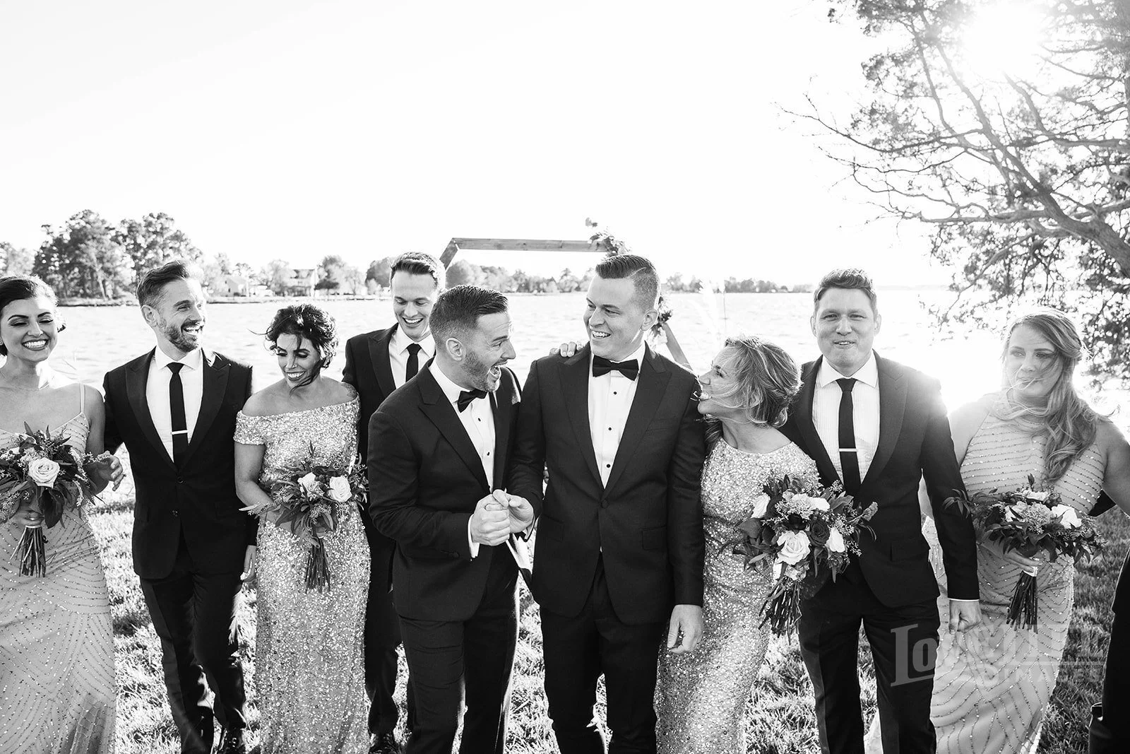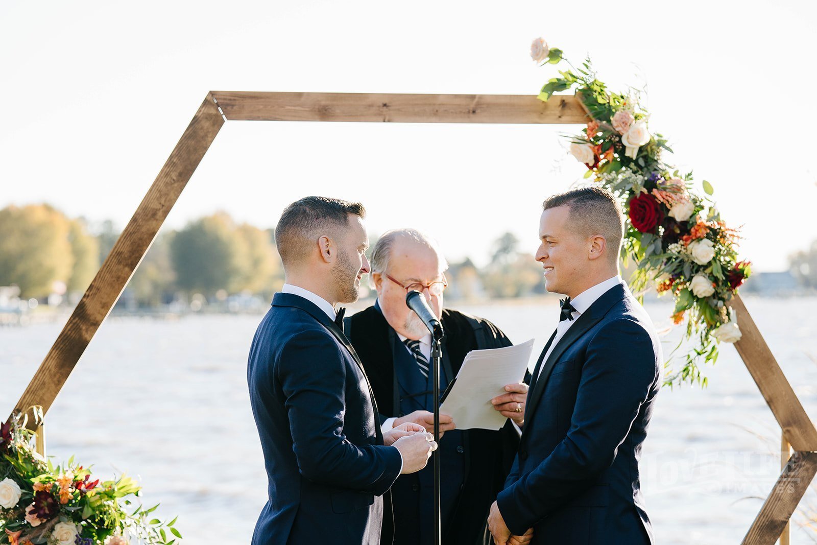 DJ and Phil are another of the countless couples who had the pandemic alter their original wedding plans. After a postponement, they decided to focus on a more intimate wedding celebration with their closest family and friends in attendance. Opting for a venue change, the pair tied the knot in a late Fall waterfront wedding ceremony at their cottage in Virginia. Fall often has amazing late afternoon light, and wedding day for DJ and Phil was no exception. We took full advantage of the gorgeous waterfront setting and surrounding trees as well as the dock at sunset to create some amazing wedding portraits. After the ceremony, everyone headed to a local restaurant to continue the celebration with champagne, cigars and sparklers! Congrats to DJ & Phil!