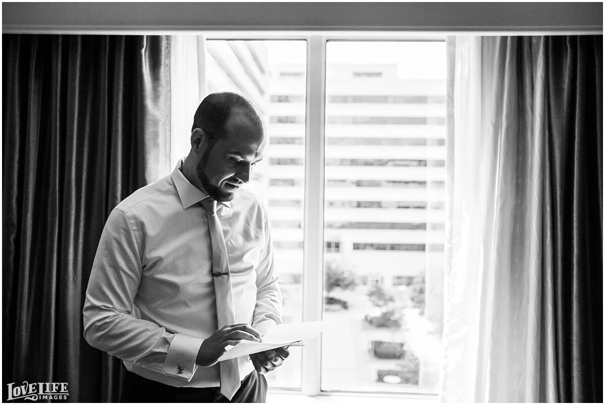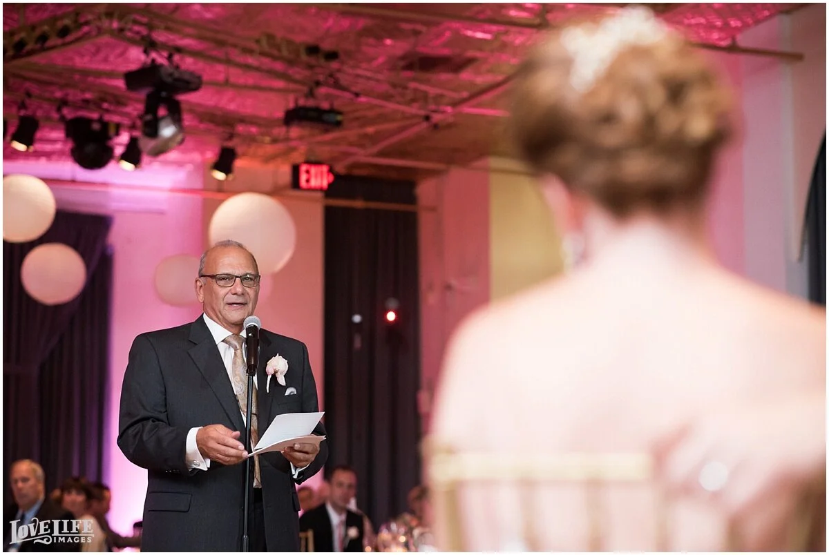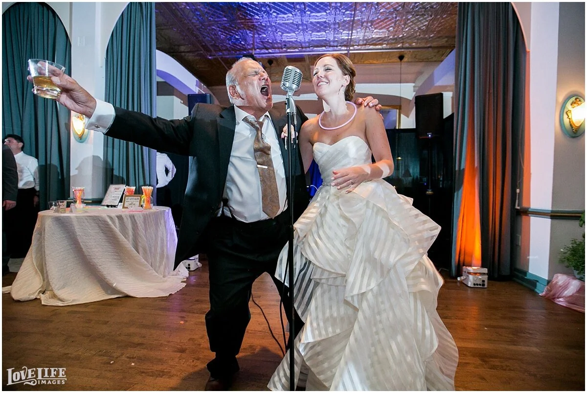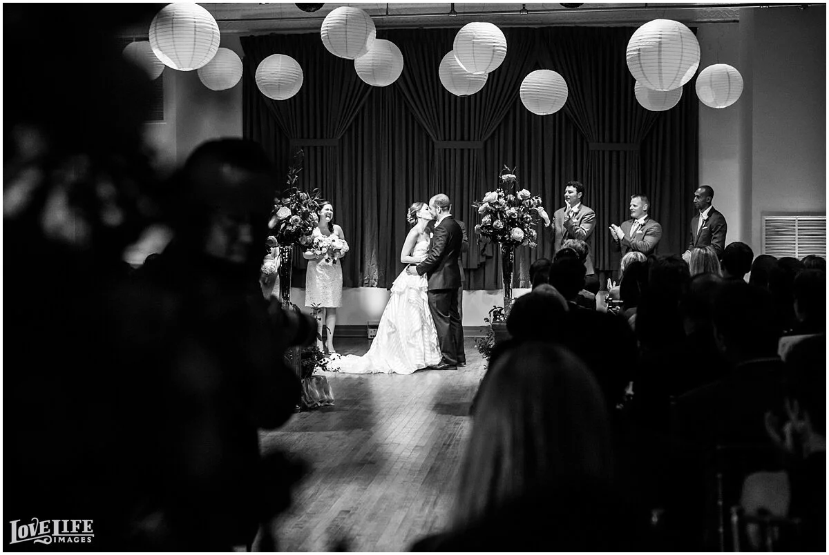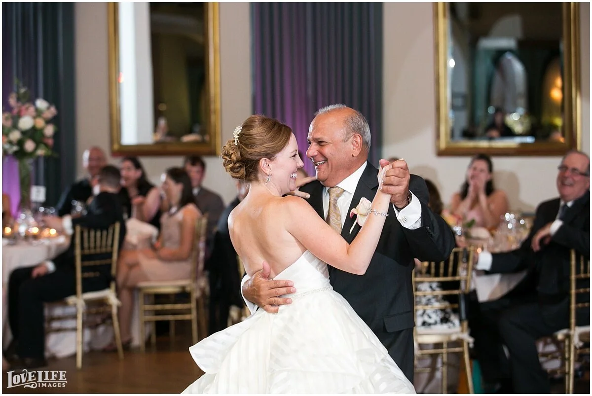 The day started with getting ready at the Hilton Garden Inn and a first look on the hotel terrace. Katie looked absolutely stunning in her beautiful wedding gown and had a most radiant smile on her face the entire day! After the first look, we headed to DC War Memorial for photos with the wedding party. Clarendon Ballroom hosted these two for the ceremony and reception, complete with big white Chinese lanterns in the ceiling and a kick-ass band to stir up the dance floor. Their day went off without a hitch thanks to Kristi of GLOW Weddings & Events.