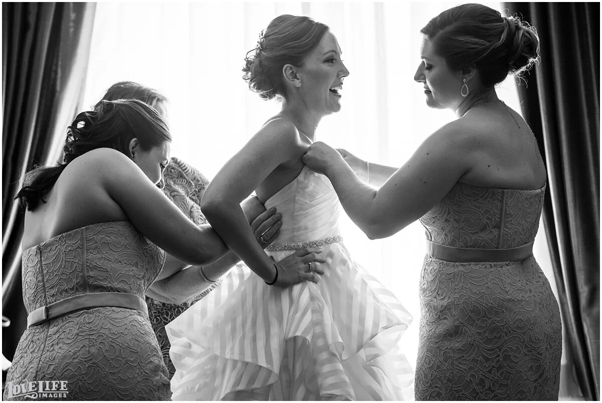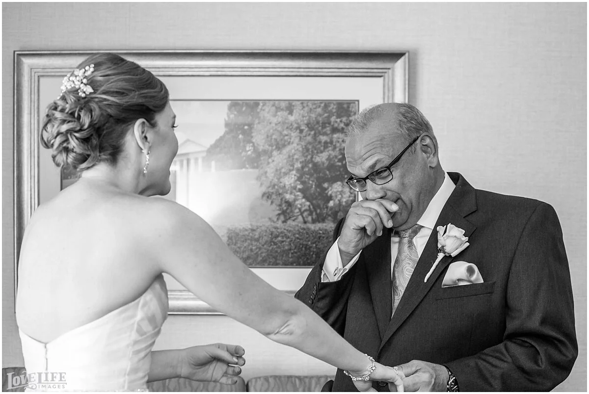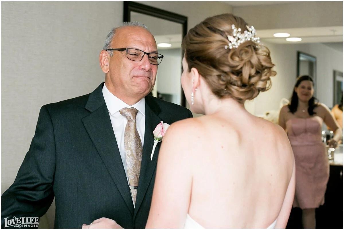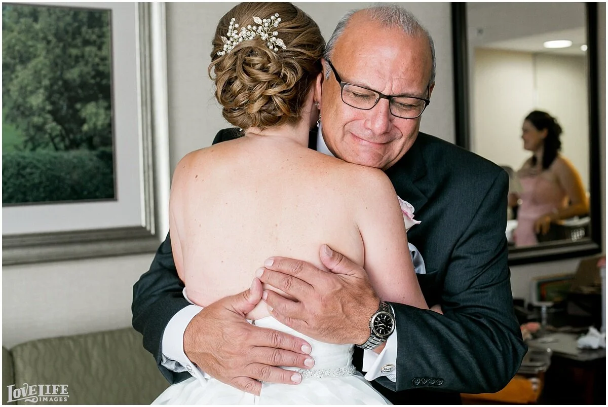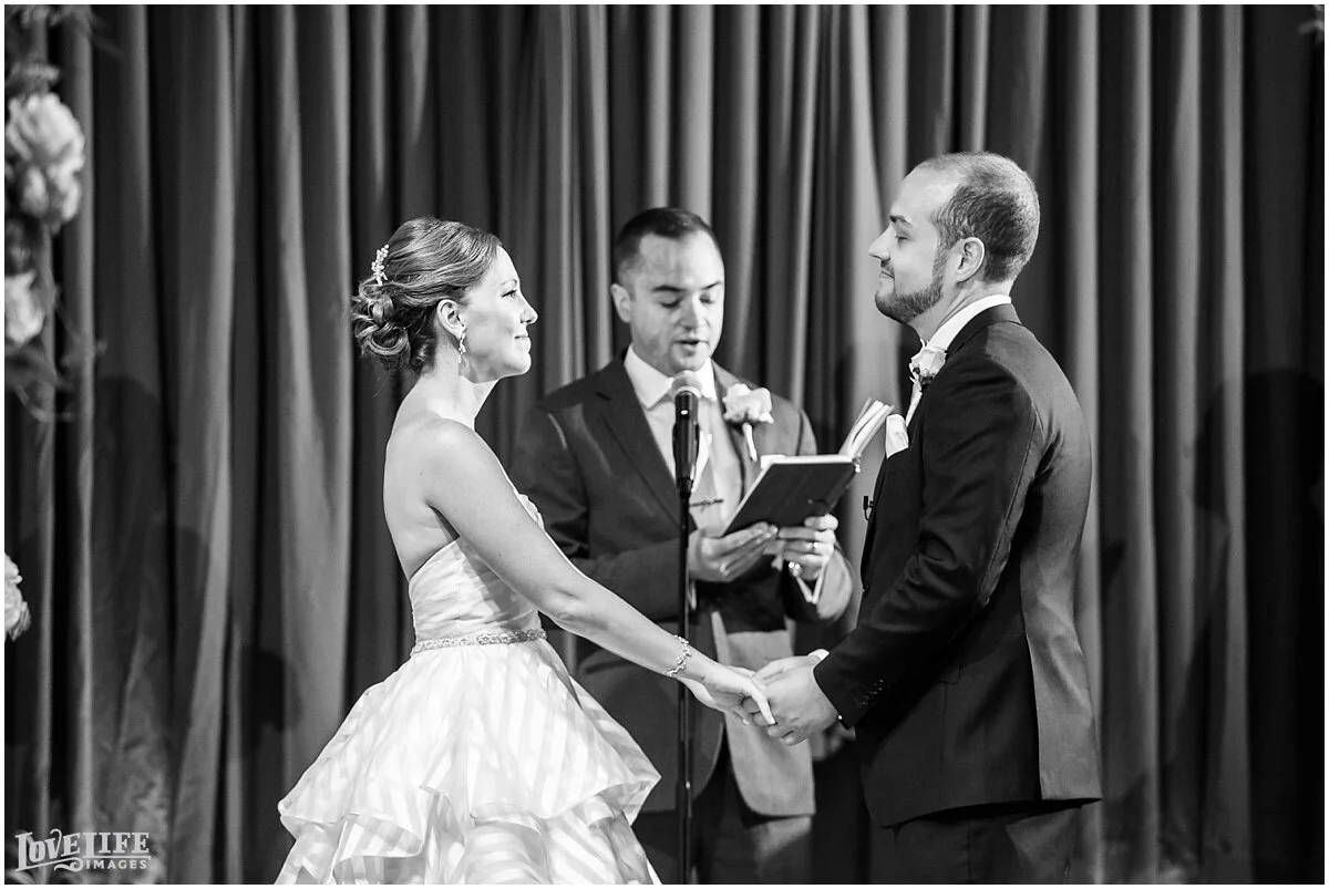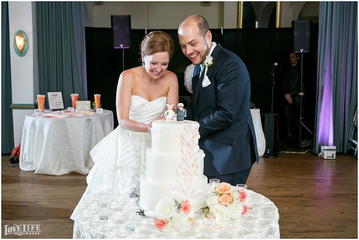 The day started with getting ready at the Hilton Garden Inn and a first look on the hotel terrace. Katie looked absolutely stunning in her beautiful wedding gown and had a most radiant smile on her face the entire day! After the first look, we headed to DC War Memorial for photos with the wedding party. Clarendon Ballroom hosted these two for the ceremony and reception, complete with big white Chinese lanterns in the ceiling and a kick-ass band to stir up the dance floor. Their day went off without a hitch thanks to Kristi of GLOW Weddings & Events.