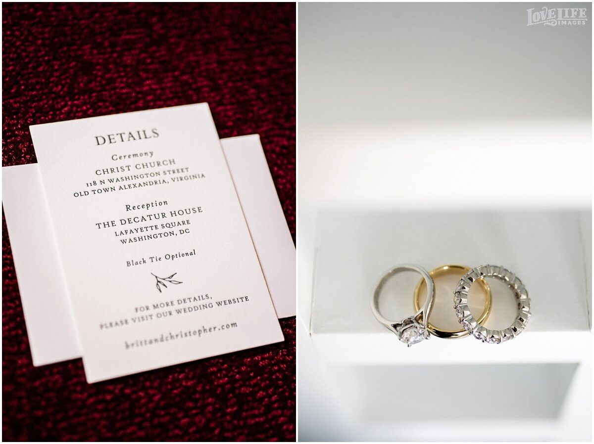 Ceremony Location: Christ Church | Reception Location: Decatur House | Coordinator: Rebecca O'Donnell, Blue Canary Events and Katie Wannen, The Plannery | Bridal Shop: Elaya Vaughn by Kate Pankoke | Shoes: Gucci | Hair + Makeup: Modern Bridal Studio | Florist: Love Blooms | Caterer: Main Event Caterers | Cupcakes: Lavender Moon Cupcakery | Transportation: RMA Limo | Officiant: Heather VanDeventer, Associate Rector at Christ Church | Ceremony music: Jason Abel, Organist at Christ Church | Reception music: The Amaretto Band | Lighting: John Farr Lighting | Invitations: Paper Pilot Studio | Honeymoon location: French Polynesia