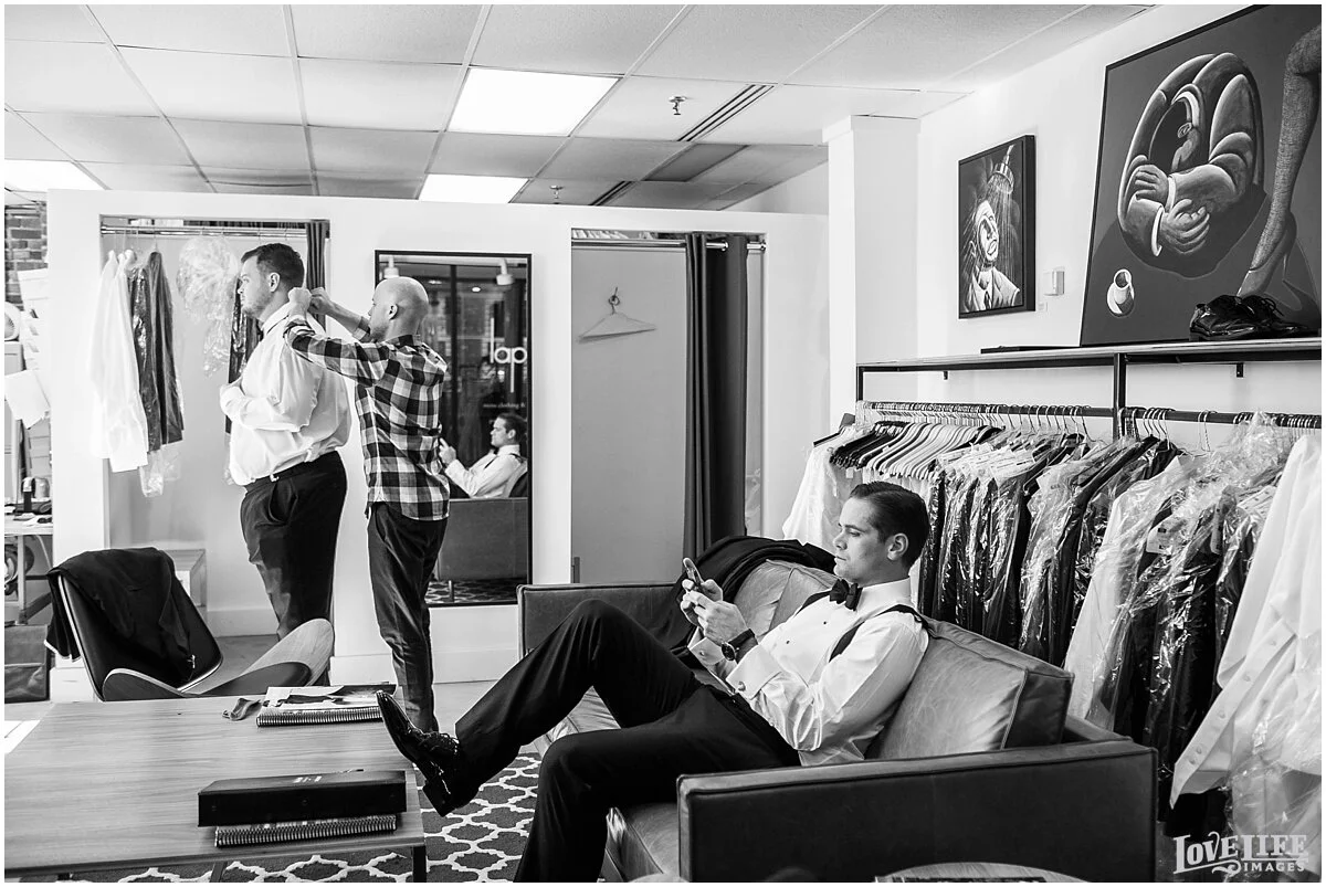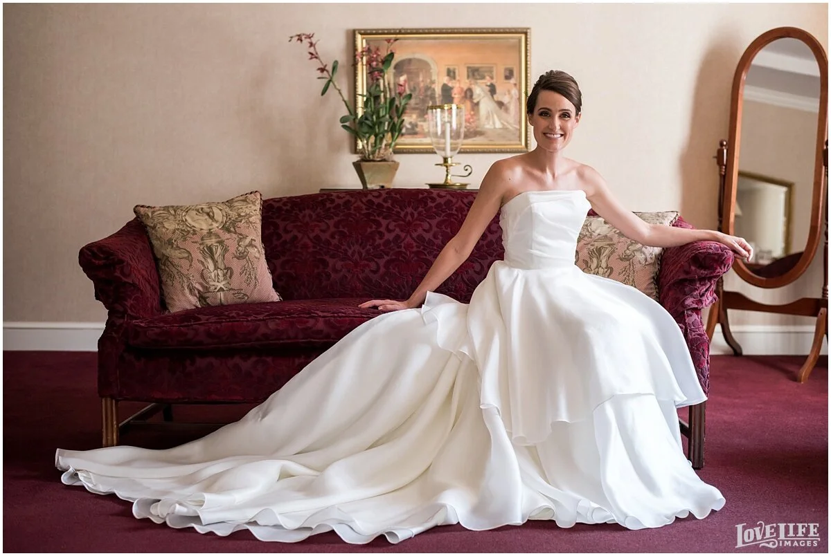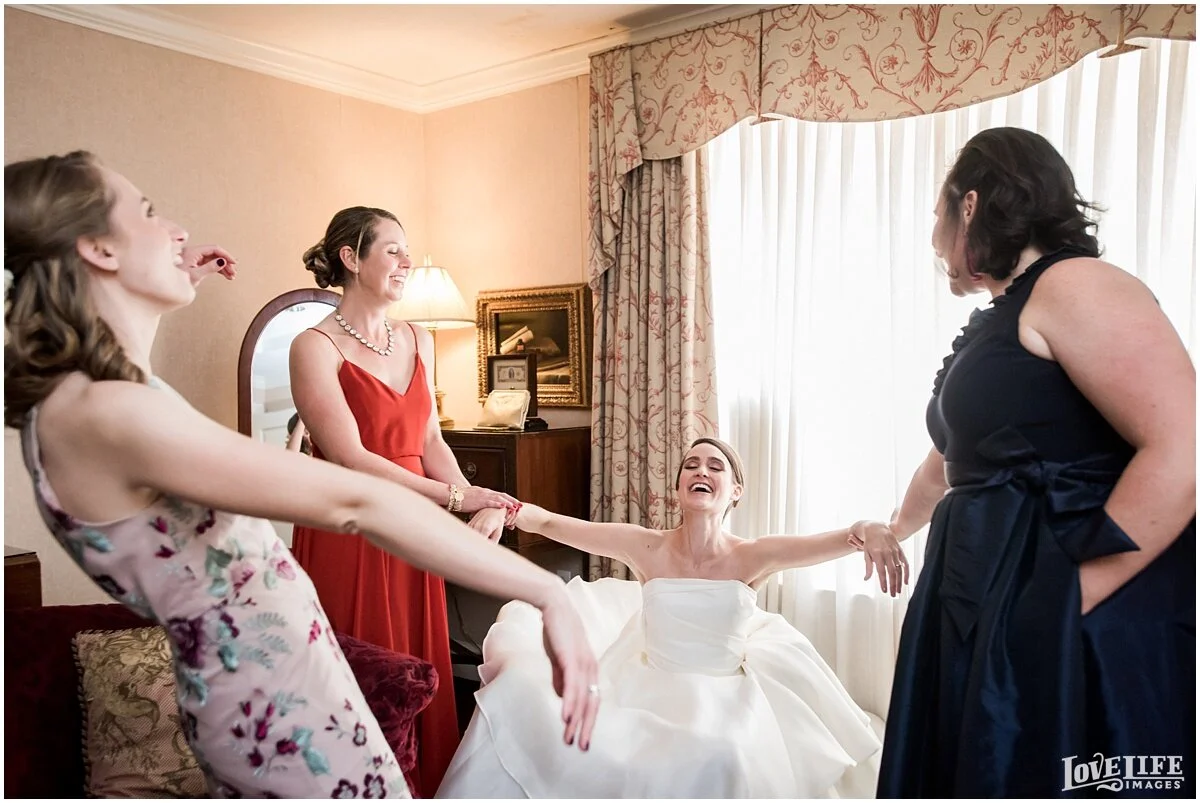 On their wedding day, the good light seemed to follow us around. Before the ceremony at Christ Church, I saw the image in my mind's eye that you see, below, of Britt sitting on the couch about as regal and happy as could be. I like it even more because of one of the images that came after it--in contrast, there's a bit of nervousness that is its own kind of beautiful in the photograph of Britt being attended to while she adds the finishing touches to her dress. It's a bit of nervousness that comes from being overwhelmed, and happy at the same time.