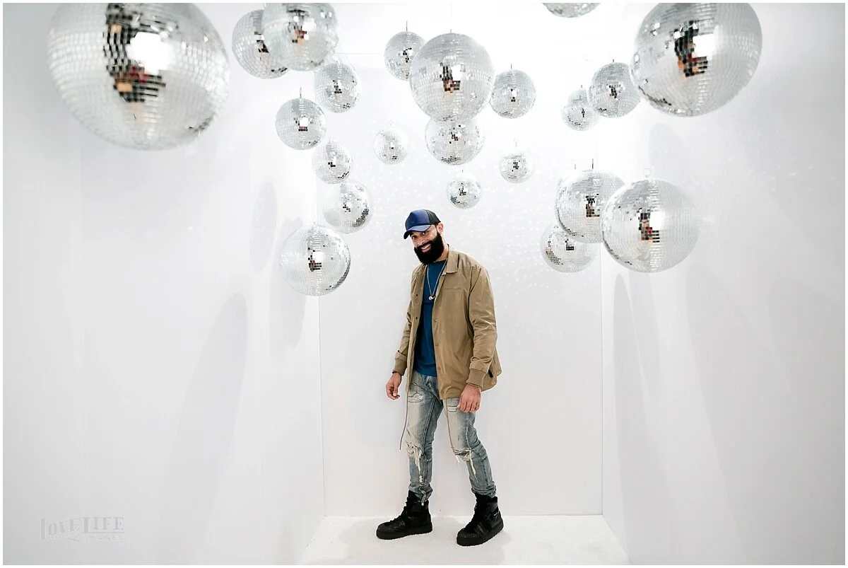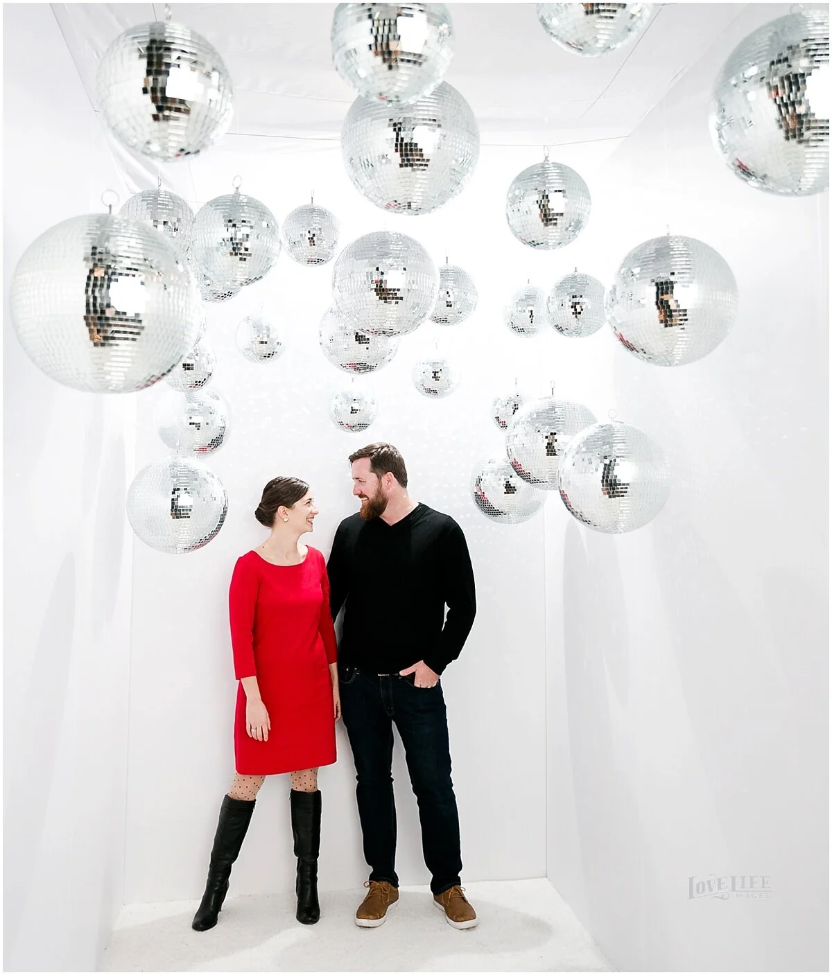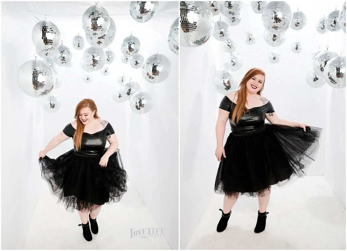 In winter, when the weddings are on hold and we have time to explore some creative endeavors, we come up with new ways to make photographs of our clients. In this recent collaboration with Revolution Events, we asked clients to wear their “funky disco chic” and meet us in the disco photo shoot room. We got funky. Here’s what we came up with, enjoy!