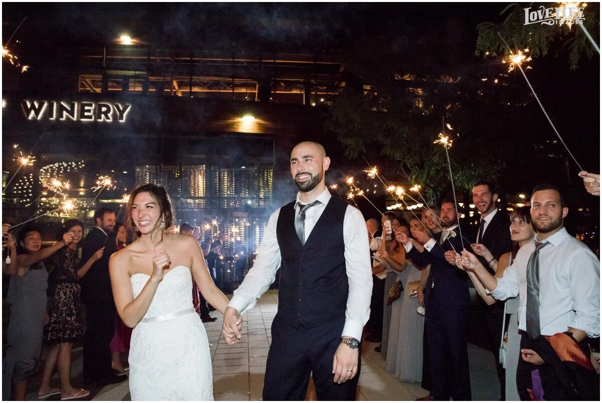 Venue: District Winery | Coordinator: A. Dominick Events | Bridal Shop: Love Couture Bridal | Dress Designer: Watters | Shoes: Jimmy Choo | Hair: Bridal Hair by Remona | Makeup: Claudine Fay | Suit: Indochino | Florist: Highway to Hill | Caterer: District Winery | Cake: Mirian Chavez | Transportation: RMA | Officiant: the bride’s brother-in-law | Entertainment: Broadsound | Invitations: Minted | Videographer: Derive Films | Honeymoon location: New Zealand