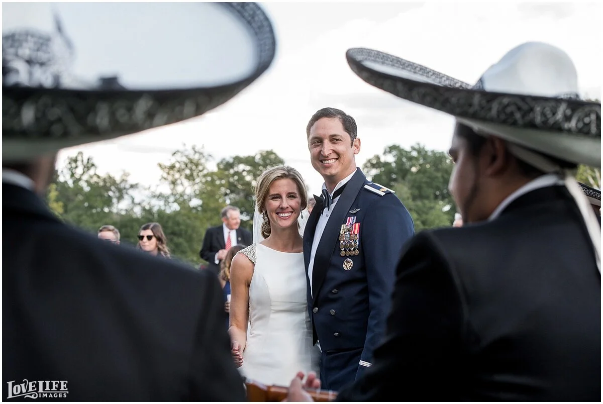 Ceremony Location: Good Shepherd Catholic Church | Reception Location: Mount Vernon Country Club | Bridal Shop: Elegance by Roya | Hair: Audrey Bethards | Makeup: Blend Makeup Artistry | Suit: Air Force Military Uniform | Florist: Flower Den Florist | Caterer: Mount Vernon Country Club | Cake: CakeFest | Officiant: Father Thomas Ferguson | Reception music: DJ DMAC and Associates | Honeymoon location: Amalfi Coast