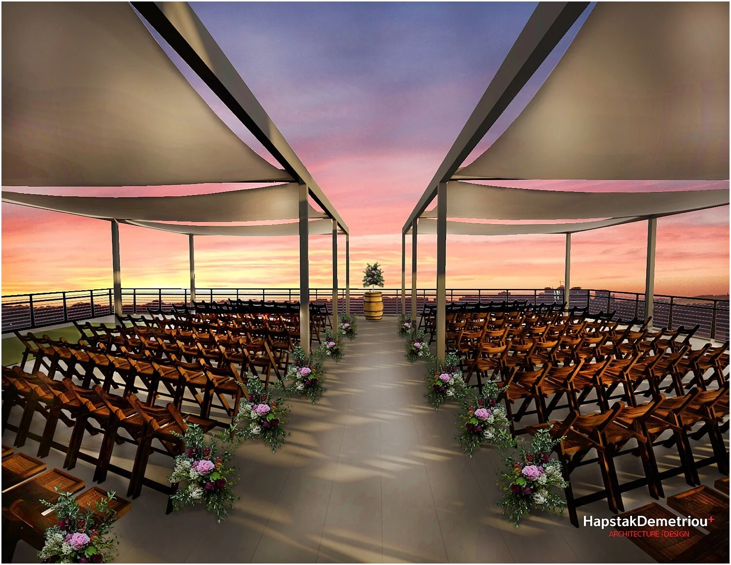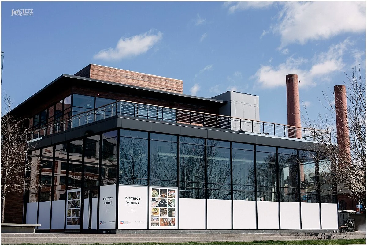 DC's new Wedding Venue, District Winery, boasts a stunning modern waterfront location with industrial ceilings, large windows and an ideal balcony for ceremonies. We couldn't be more excited about this new venue as there are endless possibilities for creative photos. Dark wood accents the exterior of the building, which is a perfect neutral color for plenty of portraits. Windows on all sides let in plenty of natural light, and stunning sunset views. Bonus: they make wine! Check out some recent photos we took while the building is still under construction, and a few renderings of the interior.