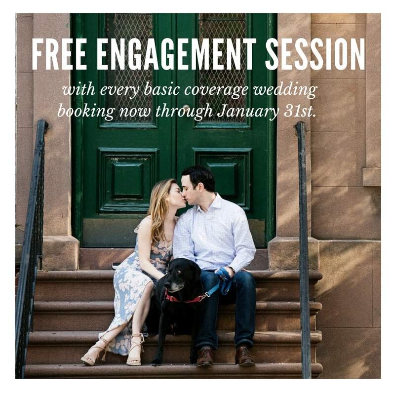 This is the busy wedding planning season! We're busy working on our 2017 goals and wrapping up the last few albums and weddings from last year. Now is the time to book your wedding photography. Associate wedding photographers Joe Wang and Matthew D'Agostino are booking fast and principle wedding photographers Jennifer Domenick and Elisha Coleman have a limited number of dates available. This special offer is only once a year and includes an engagement session at the location of your choice and approximately 90 minutes of shooting time with your photographer. One image will be released to you for your use and additional images can be purchased. If you are still unsure about your wedding photography plans, check out our Ten Tips for Hiring the Best Wedding Photographer.