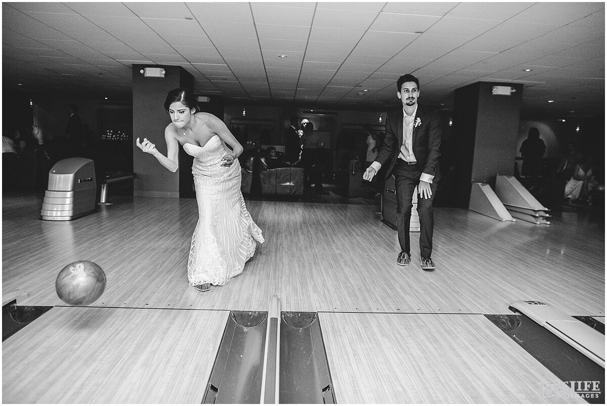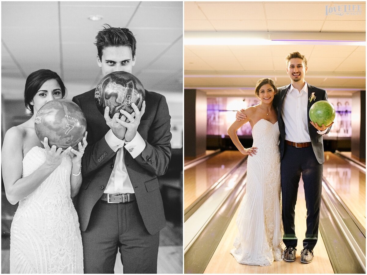 If it's going to rain on your big day, let it be just a sprinkle so we can still go out and take fun photos with umbrellas! I always tell my brides that if they're debating buying umbrellas for the inclement weather, just do it. You'll be so grateful you did if they're needed, and they make for fun photos. We had a great little walk from The Graham Hotel to Pinstripes in Georgetown, stopping at some fun backdrops on the way. This day was full of sweet and tender moments, like the first look with Danielle and her father who instantly broke into tears after seeing his daughter for the first time. I rarely get to continue the night with the bride and groom into the after party, and it was a treat to photograph Danielle, Chris and all of their family and friends take over the bowling lanes in their fancy attire.