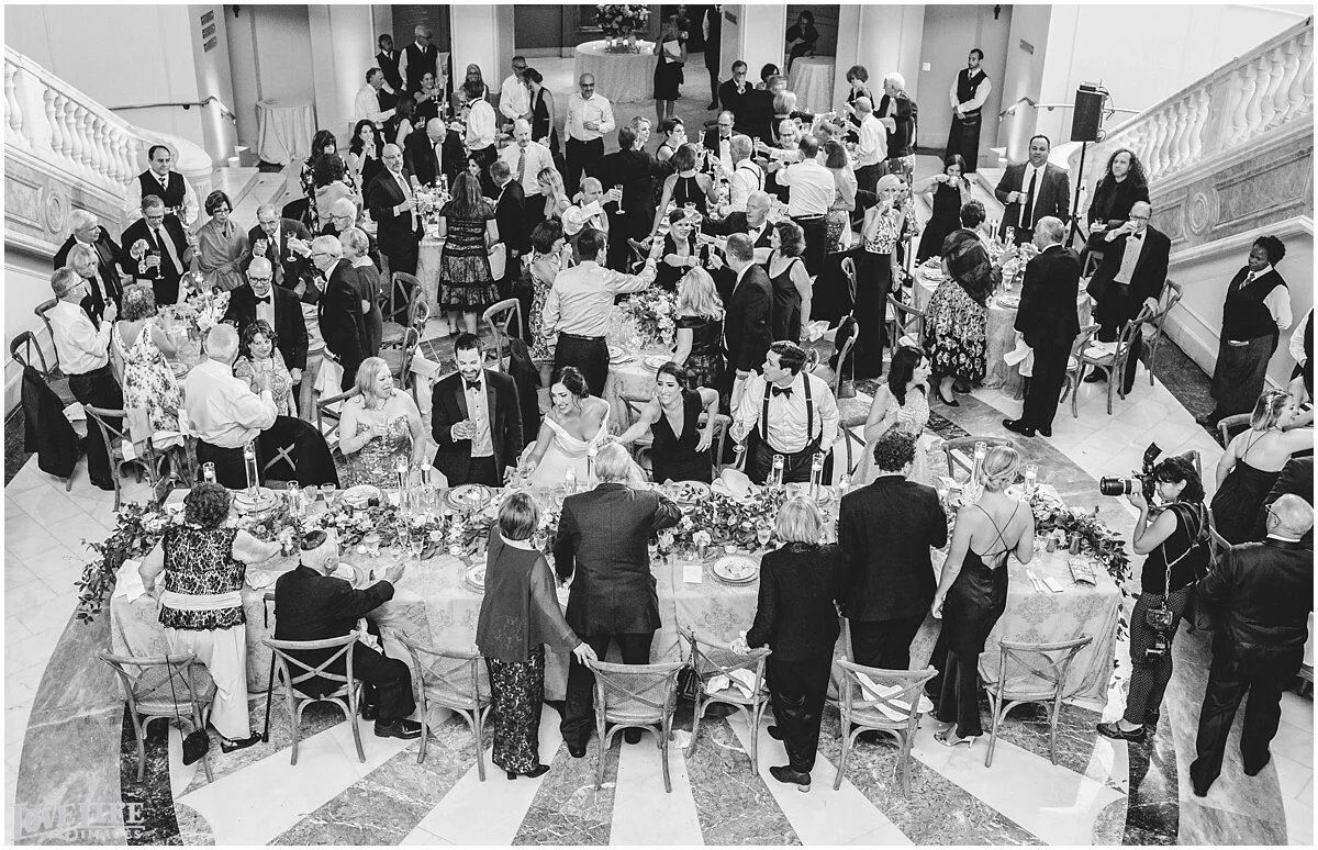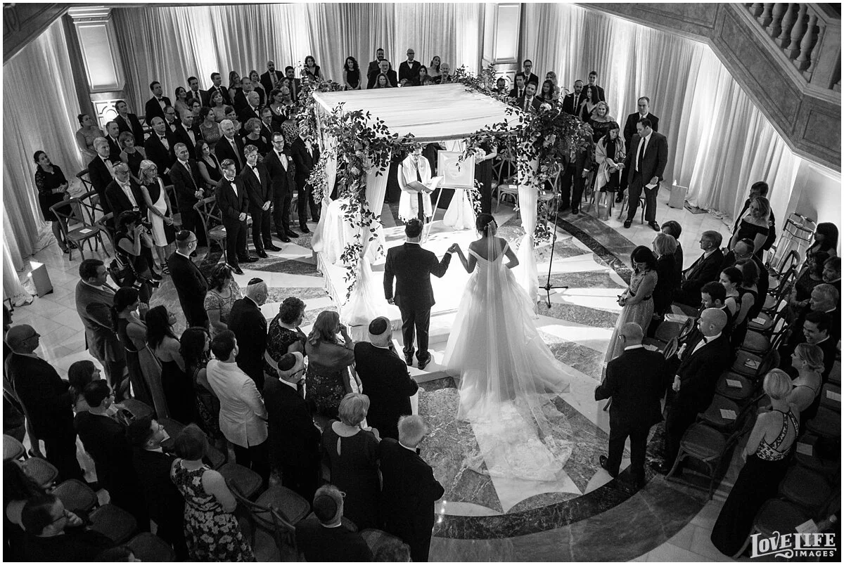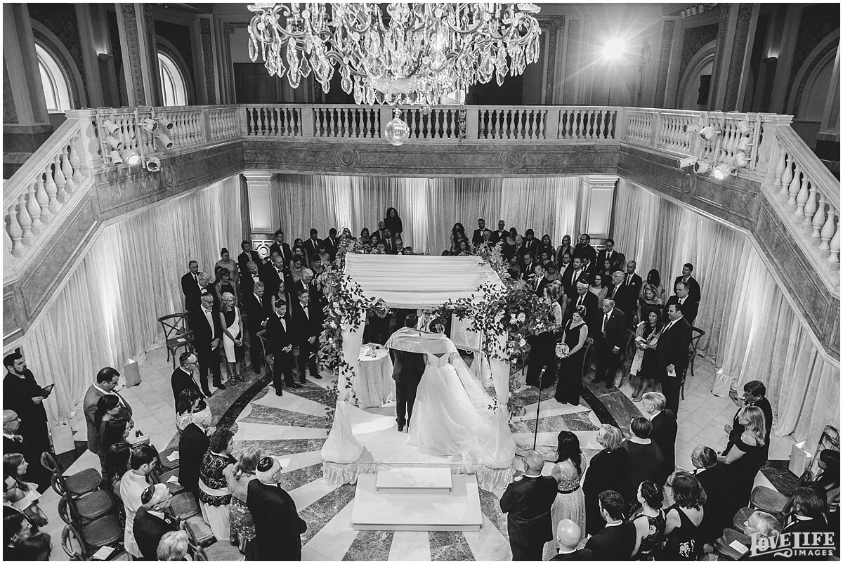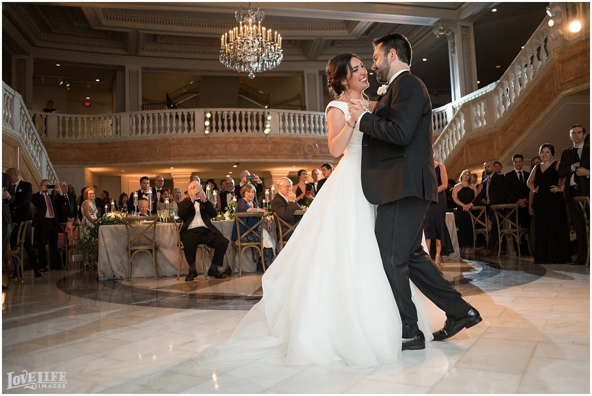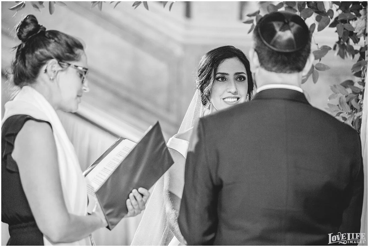 Ceremony + Reception Location: National Museum of Women in the Arts | Coordinator: Aimee, A. Dominick Events | Bridal Shop: Carine's Bridal Atelier | Dress Designer: Romona Keveza | Shoes: Manolo Blahnik | Hair + Makeup: Amie Decker Beauty | Suit/Tux: Modern Tux | Florist: Sweet Root Village | Caterer + Cake: Occasions Caterers | Officiant: Rabbi Hannah Goldstein | Ceremony music: Cherry Blossom String Quartet | Reception music: The Source, Elan Artists | Lighting: Frost Lighting | Invitations: LBrown Design + Paperie