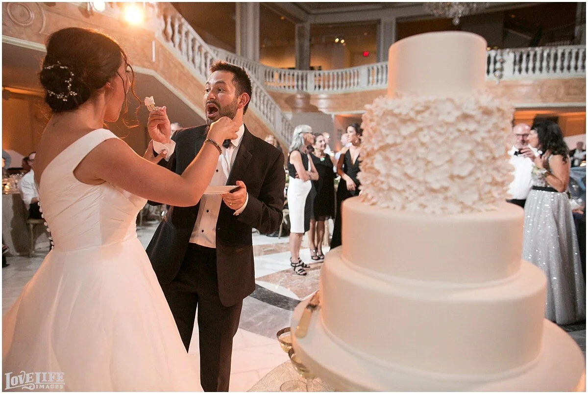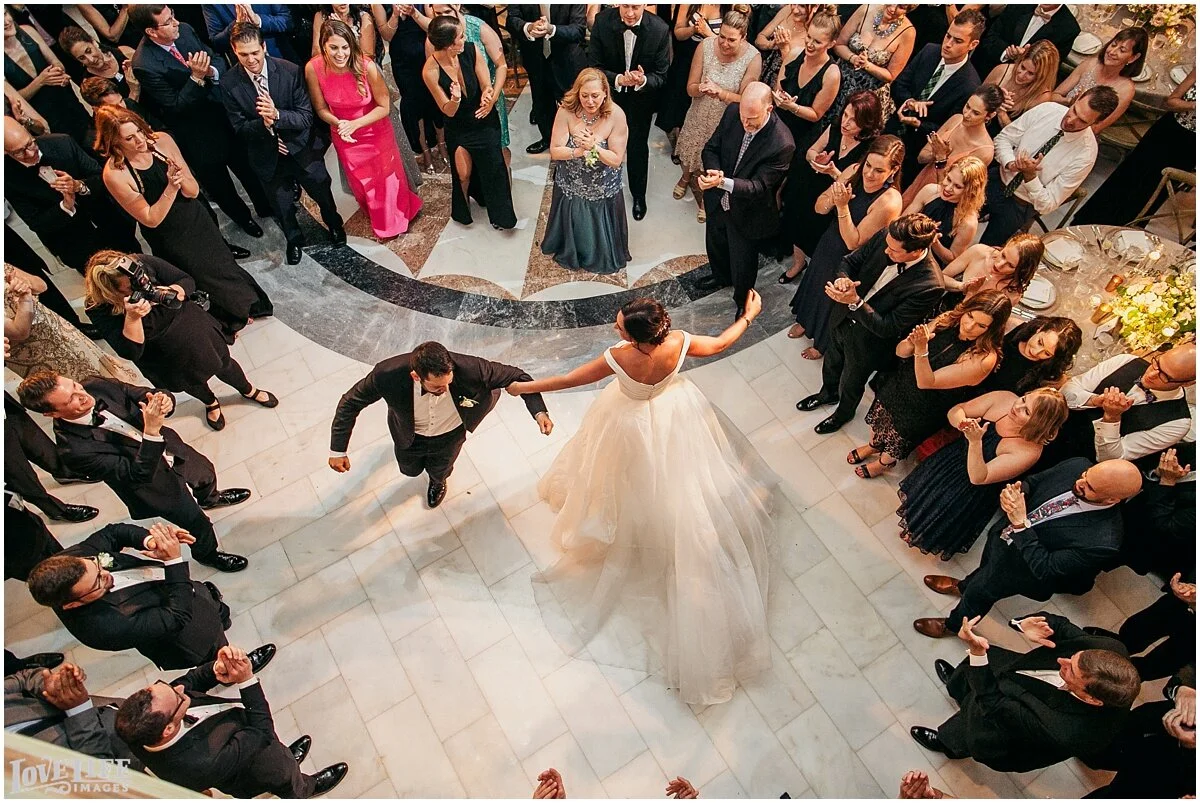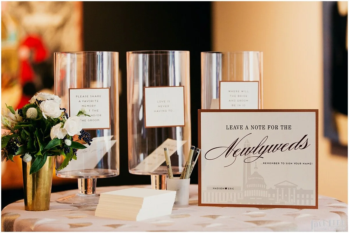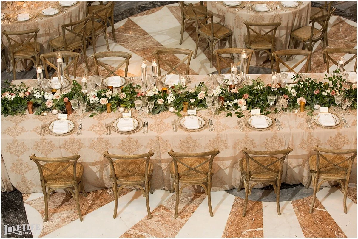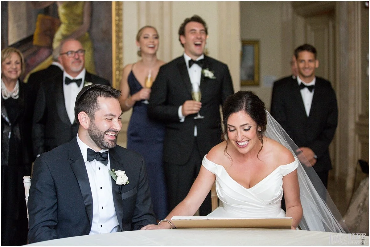 Ceremony + Reception Location: National Museum of Women in the Arts | Coordinator: Aimee, A. Dominick Events | Bridal Shop: Carine's Bridal Atelier | Dress Designer: Romona Keveza | Shoes: Manolo Blahnik | Hair + Makeup: Amie Decker Beauty | Suit/Tux: Modern Tux | Florist: Sweet Root Village | Caterer + Cake: Occasions Caterers | Officiant: Rabbi Hannah Goldstein | Ceremony music: Cherry Blossom String Quartet | Reception music: The Source, Elan Artists | Lighting: Frost Lighting | Invitations: LBrown Design + Paperie