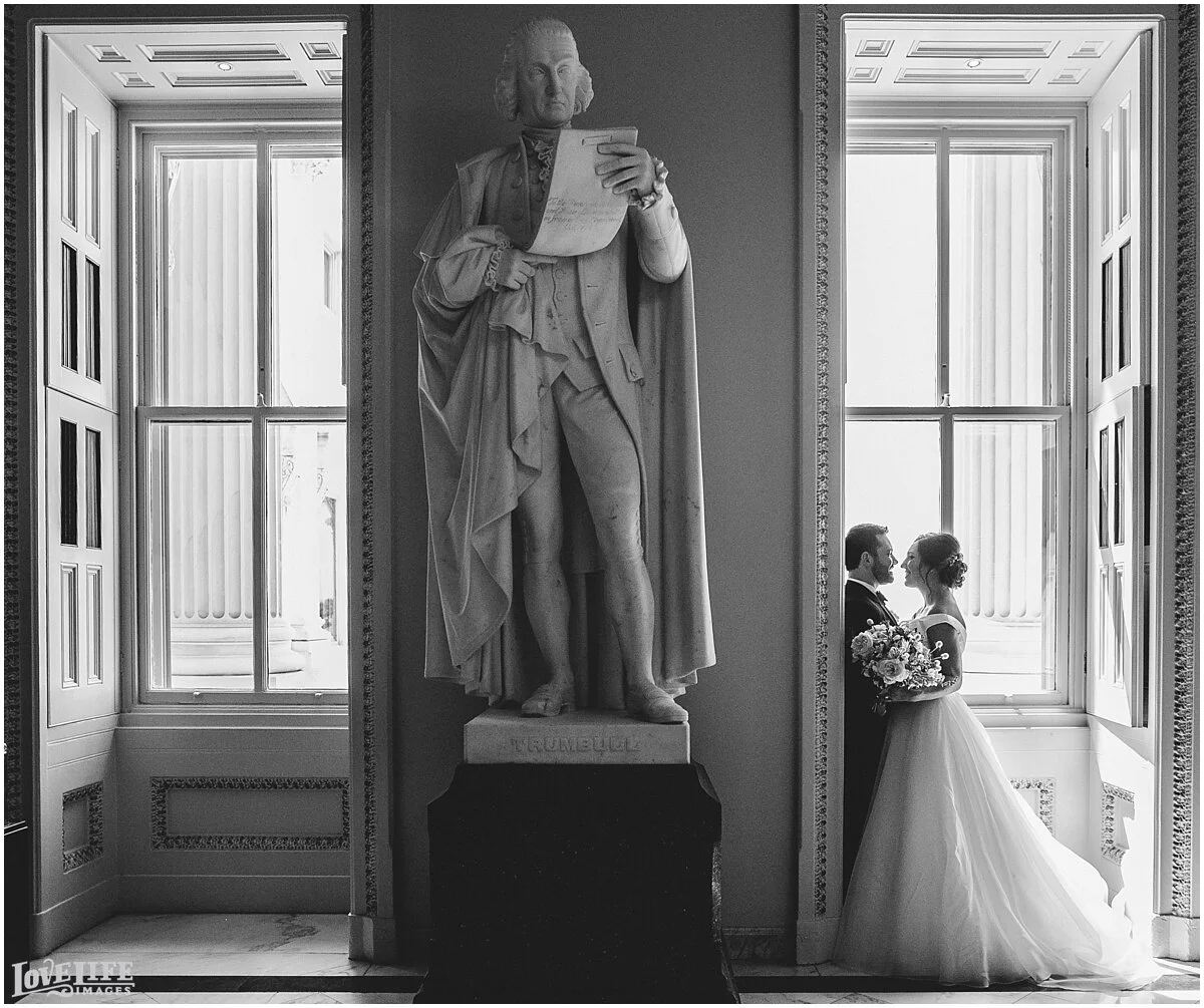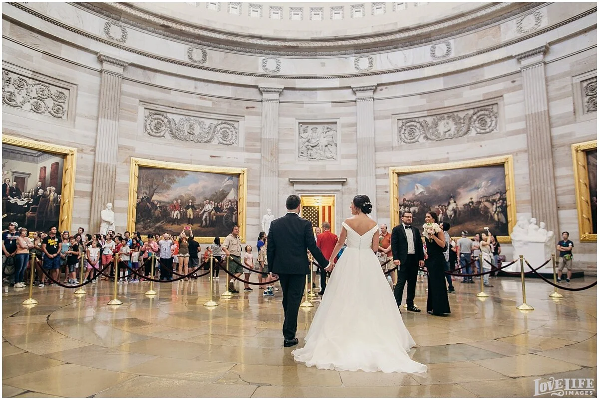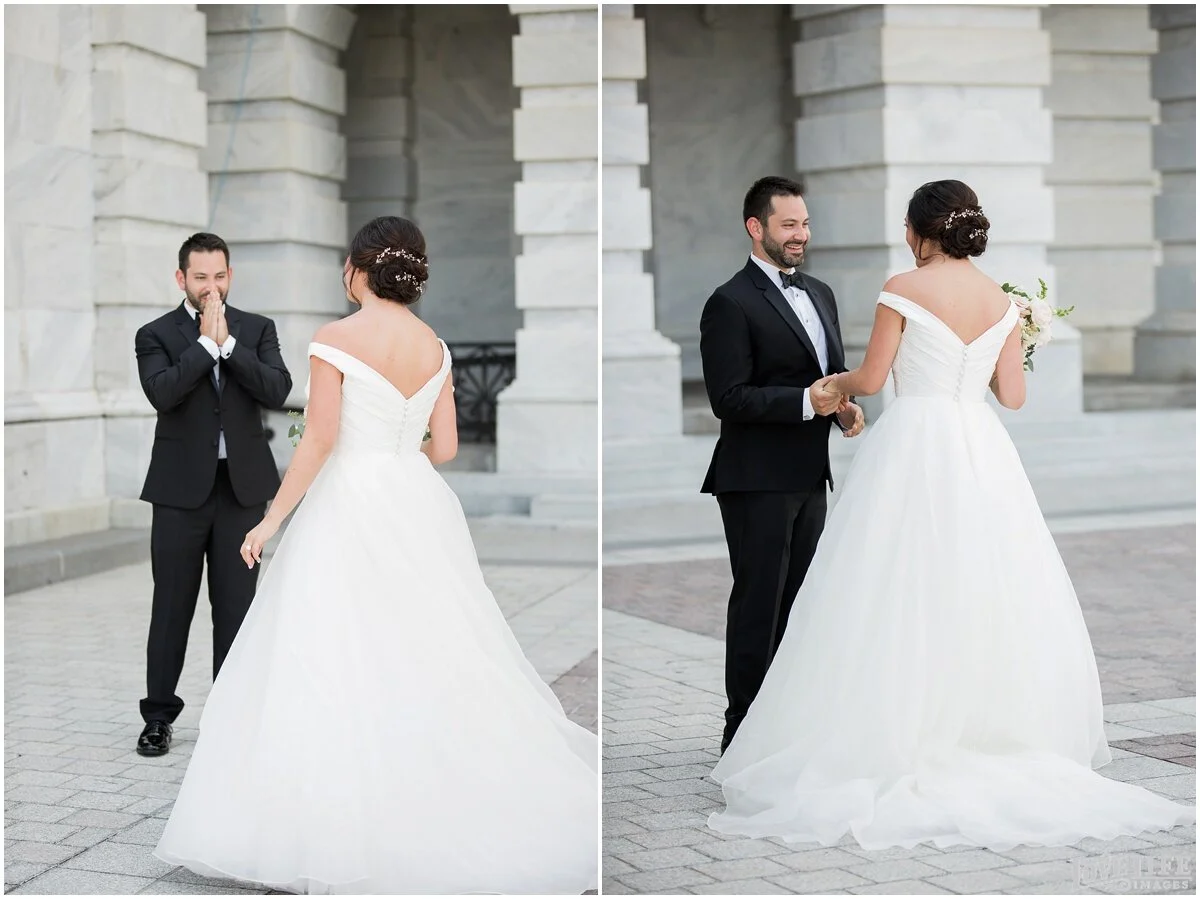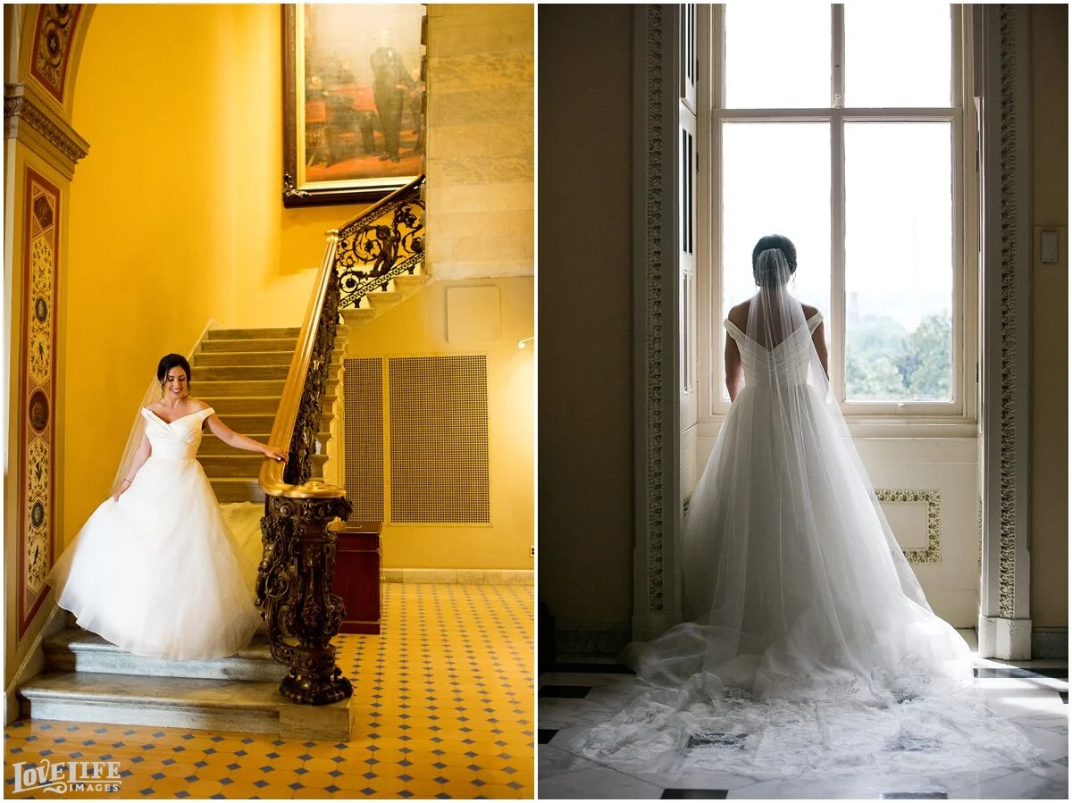 Photographing weddings in Washington D.C. means knowing your way around federal buildings and their photography policies. In the case of Madison and Eric's wedding, a groomsman provided special access to some of the most famous rooms in the Capital building- a rare opportunity for the couple and for us. We took full advantage and spent a significant time exploring the buildings. It was nice to have those photos done in the afternoon and then go on to celebrate with family and friends at the National Museum of Women in the Arts. Enjoy all the images from this stunning wedding including a fun surprise at the reception. A big thanks to A. Dominick Events for their expert planning and co-ordination for this event.
