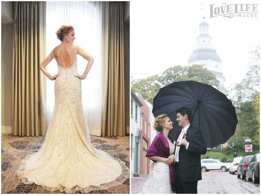 Kathryn & Tim got married at the Annapolis Marriott Waterfront Hotel in Historic Downtown. It turned out to be an amazing day even with it raining almost non-stop all day, nothing could have stopped them from having a memorable and beautiful wedding! One of my favorite moments of their day was their first look - Tim’s face totally lit up when he turned to see gorgeous Kathryn in her gown for the first time! We bolted out to grab some shots around downtown Annapolis and captured some memorable images right before the ceremony and we were pretty happy to have the rain hold off for the group portraits!