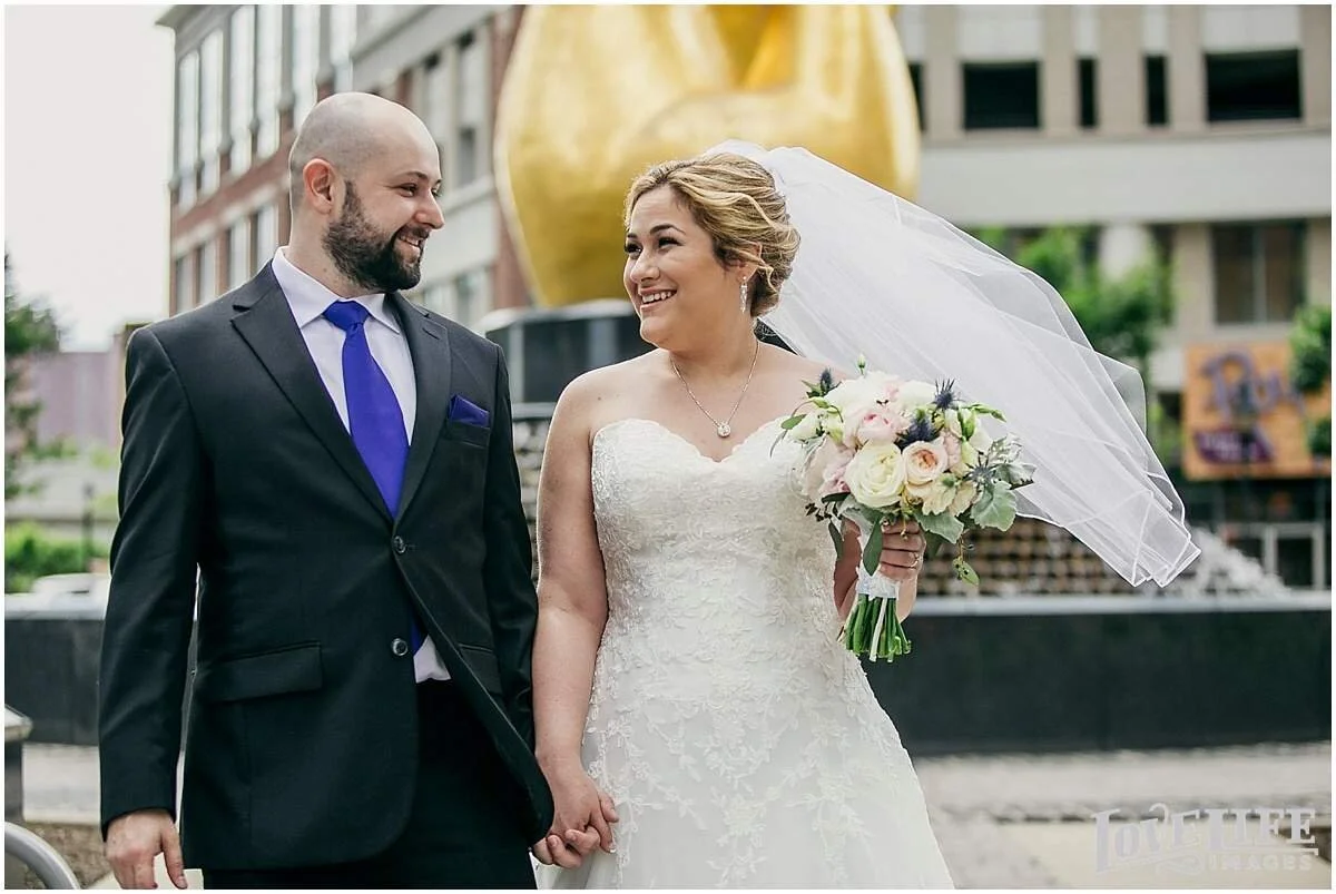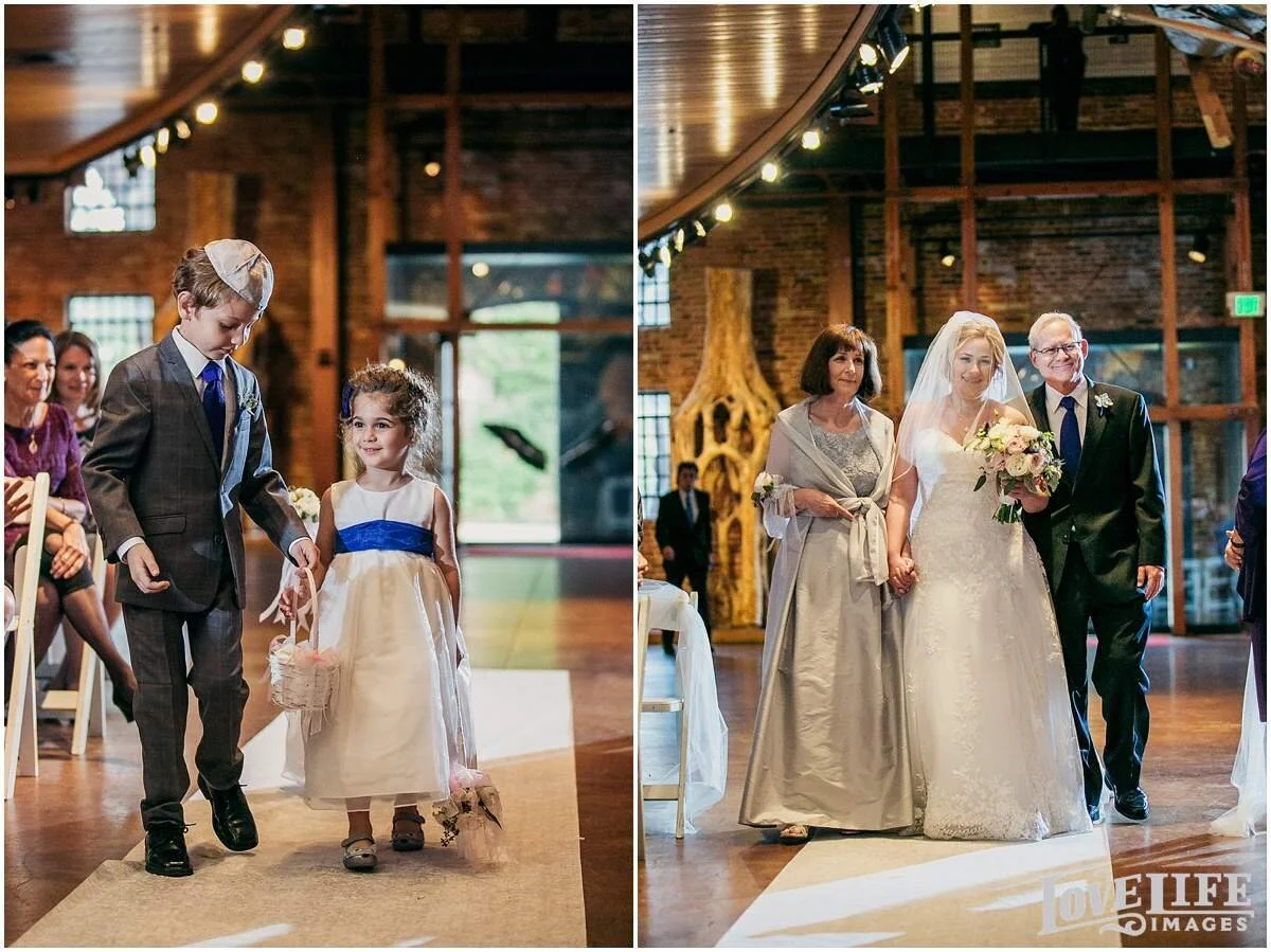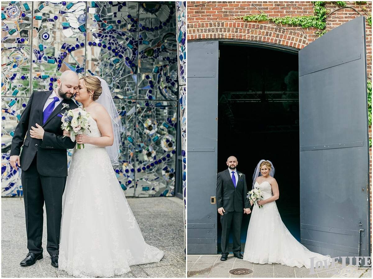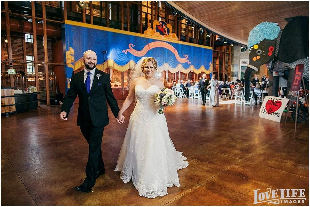 Amy and David had their exquisite Baltimore wedding at the American Visionary Art Museum. We started off with their first look around the fountain in Harbor East and moved onto AVAM to take advantage of the many gorgeous and fun backdrops there. Friends and family witnessed a beautiful ceremony with the charm of the AVAM art all around. Amy and David said their vows under Amy's mother's veil that was used for the chuppah. The ceremony space was filled with tears, smiles and laughter and the fun continued into the night as Amy and David danced the night away.