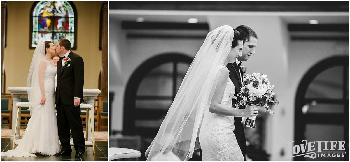 It was a perfect late autumn day full of love and joy, Marisa and Adam tied the knot at Our Lady of Mercy Catholic Church in Potomac, Maryland. The lighting was amazing - with a huge skylight letting soft, natural light pour in over their ceremony. The reception took place at the gorgeous Columbia Country Club.