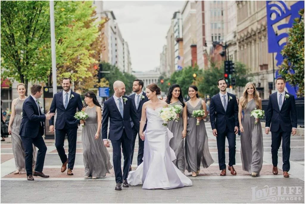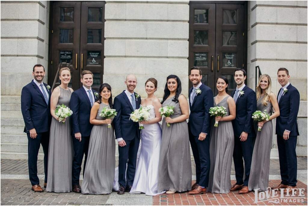 We had a great time with Jennifer and Jon at the always fabulous Hotel Monaco. A gorgeous backdrop for this handsome group. I just loved Jennifer's train and the navy suits on the guys.