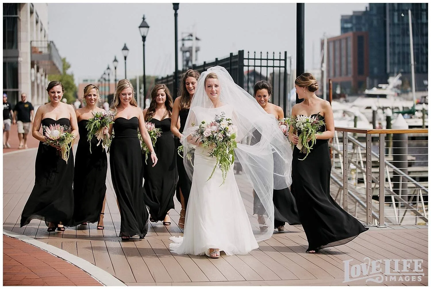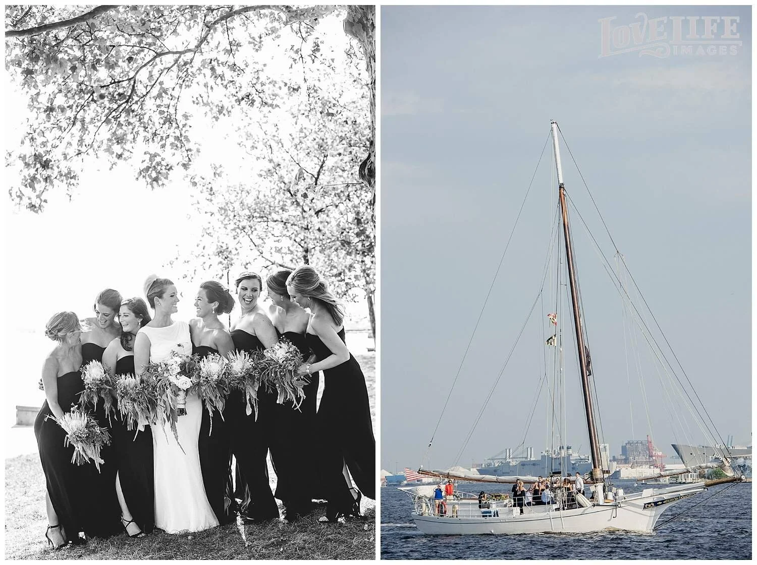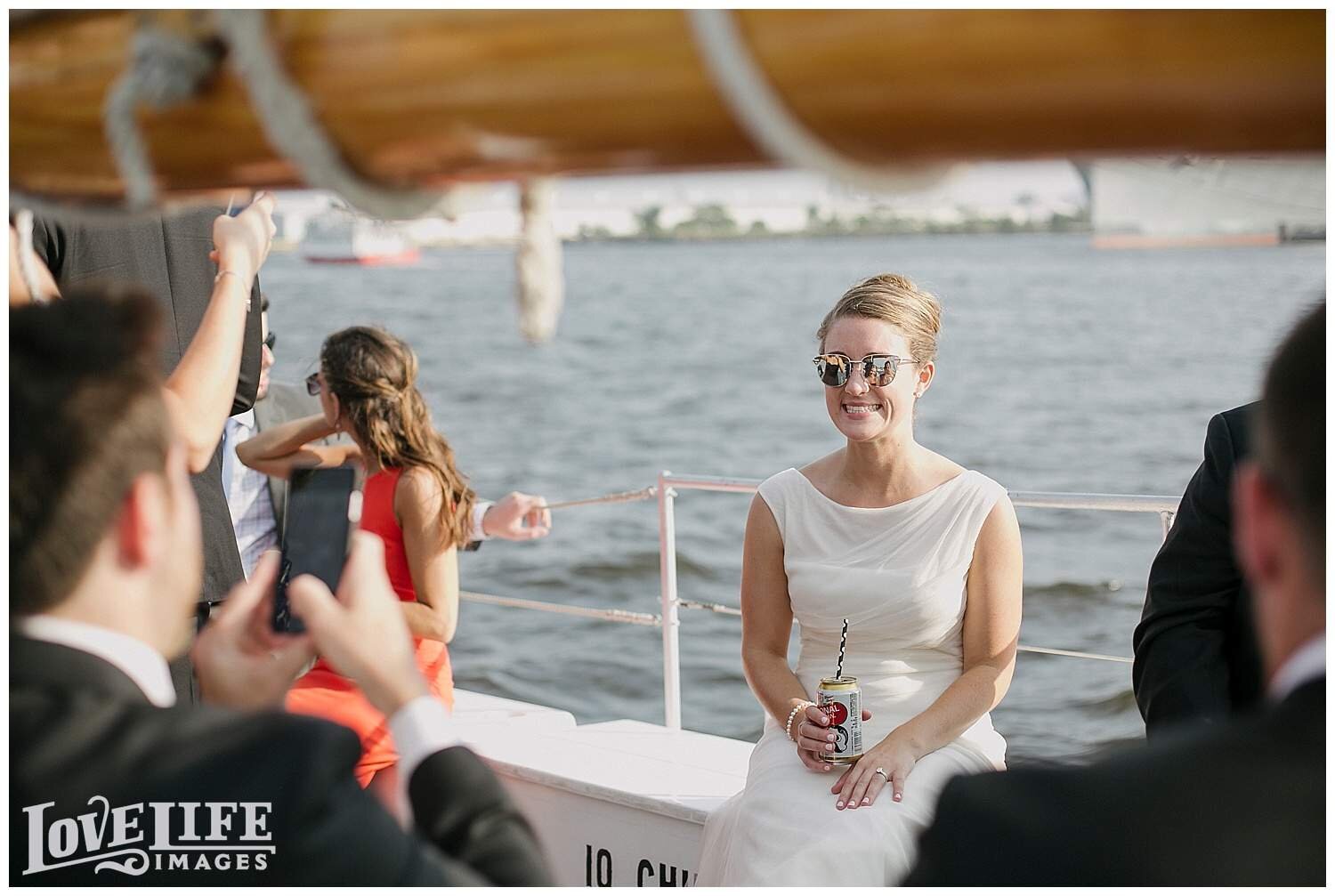 I had so much fun with Jenni and Josh and the whole bridal party group as we hopped around east Baltimore on their special day. From the Four Seasons in Harbor East to St. Casimir Church in Canton Square and then onto a sail boat where we crossed the Harbor to the Frederick Douglass-Isaac Myers Maritime Park venue in Fells Point. It was sunny, breezy and Natty Boh was in great supply. As we arrived to the venue we were greeted with happy family and friends who were enjoying cocktail hour on the promenade. I absolutely loved the dinner space with it's beautiful view of the harbor, long tables and the arrangements of flowers and moss. Most importantly, Jenni and Josh were radiating with love and happiness. They were such a treat to photograph. Thank you, Jenni and Josh, for allowing me to document this amazing day!