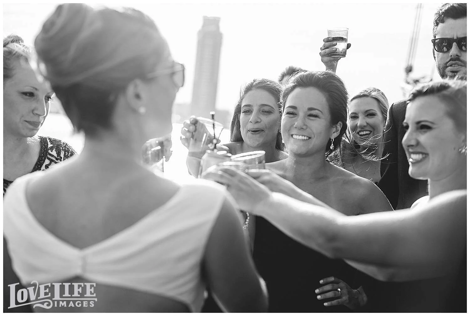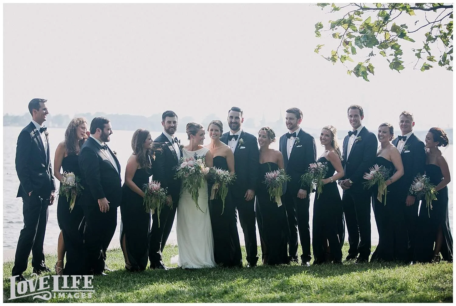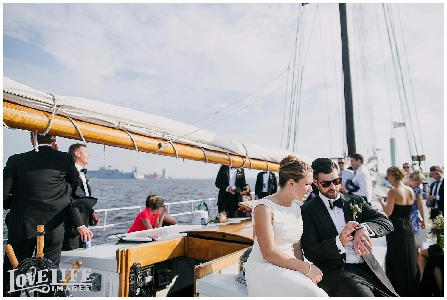 I had so much fun with Jenni and Josh and the whole bridal party group as we hopped around east Baltimore on their special day. From the Four Seasons in Harbor East to St. Casimir Church in Canton Square and then onto a sail boat where we crossed the Harbor to the Frederick Douglass-Isaac Myers Maritime Park venue in Fells Point. It was sunny, breezy and Natty Boh was in great supply. As we arrived to the venue we were greeted with happy family and friends who were enjoying cocktail hour on the promenade. I absolutely loved the dinner space with it's beautiful view of the harbor, long tables and the arrangements of flowers and moss. Most importantly, Jenni and Josh were radiating with love and happiness. They were such a treat to photograph. Thank you, Jenni and Josh, for allowing me to document this amazing day!