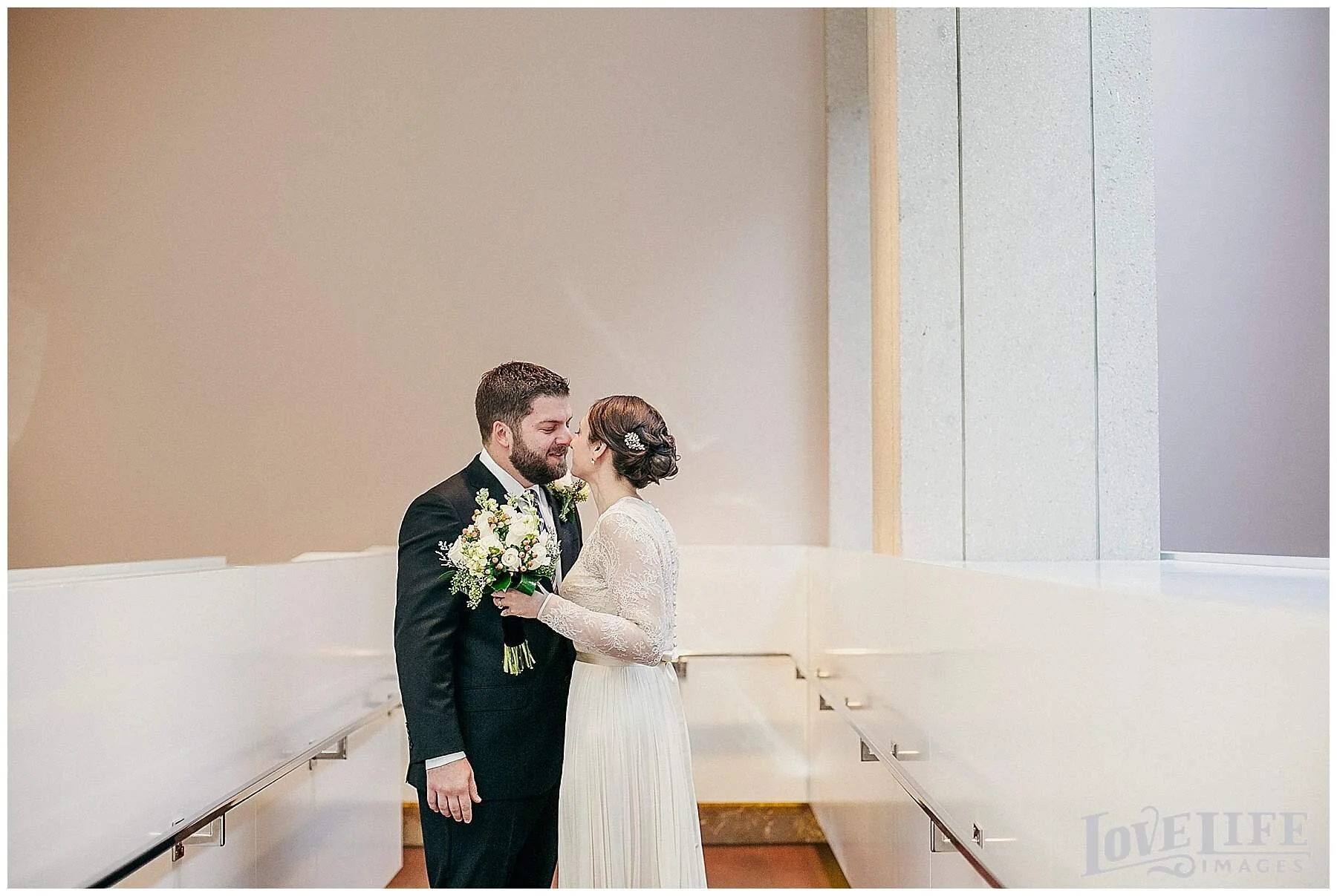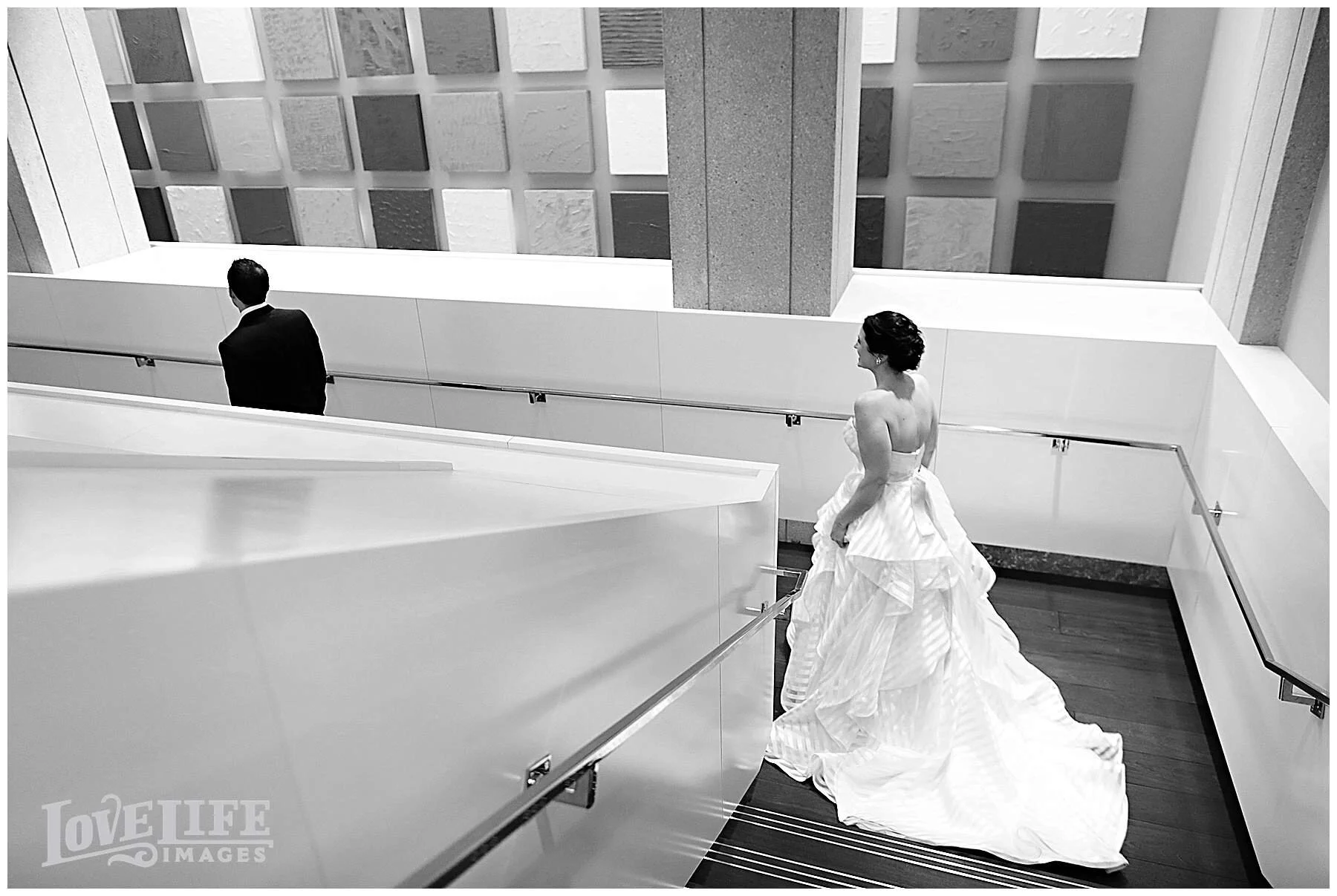 We love this landing in between the first and second floors to do "First Looks". There is a lot of natural light and long, clean lines to make for gorgeous images.