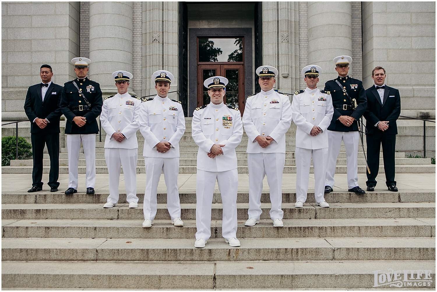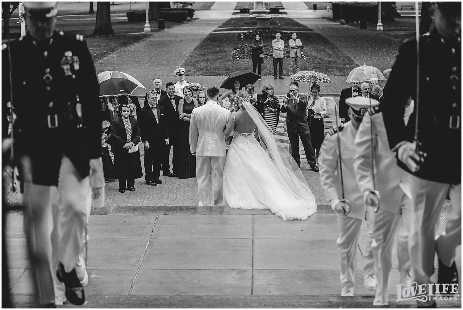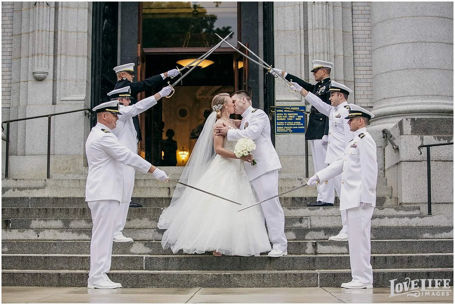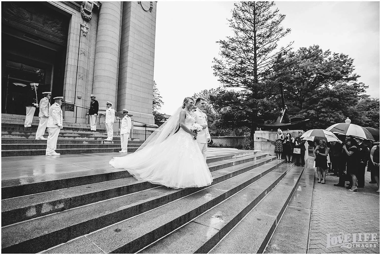 Despite the rain right after their ceremony, it didn’t stop these two from strolling around the Naval Academy grounds for photos together as husband and wife. The rain and clouds soon cleared for them, and we covered more even ground of the Naval Academy.