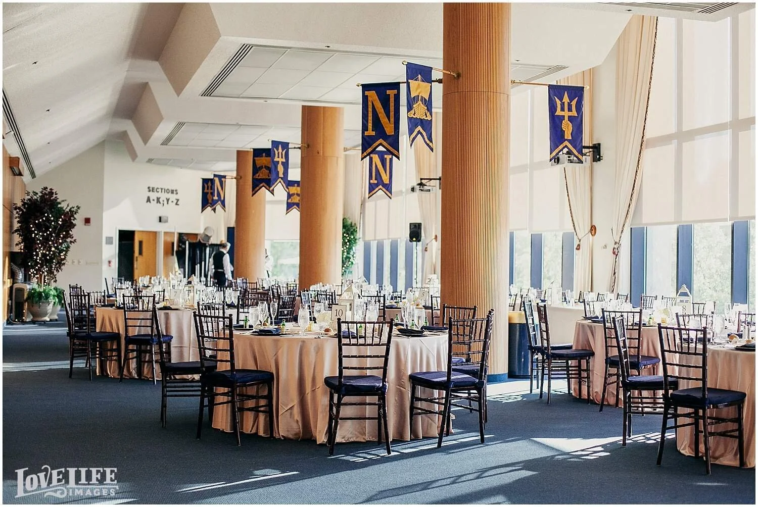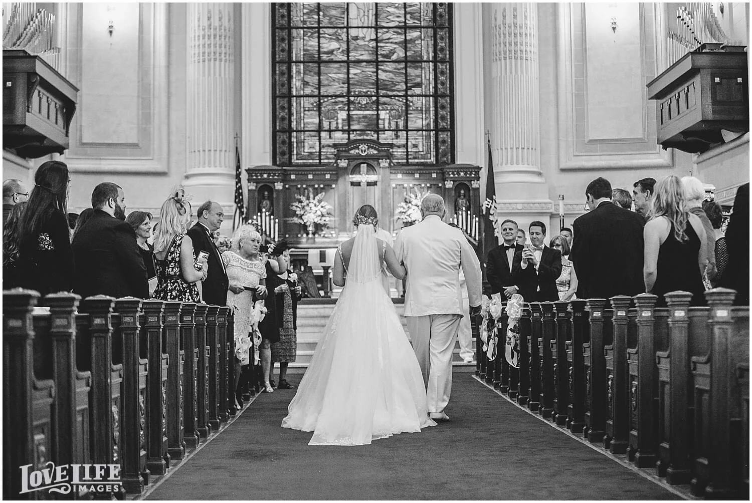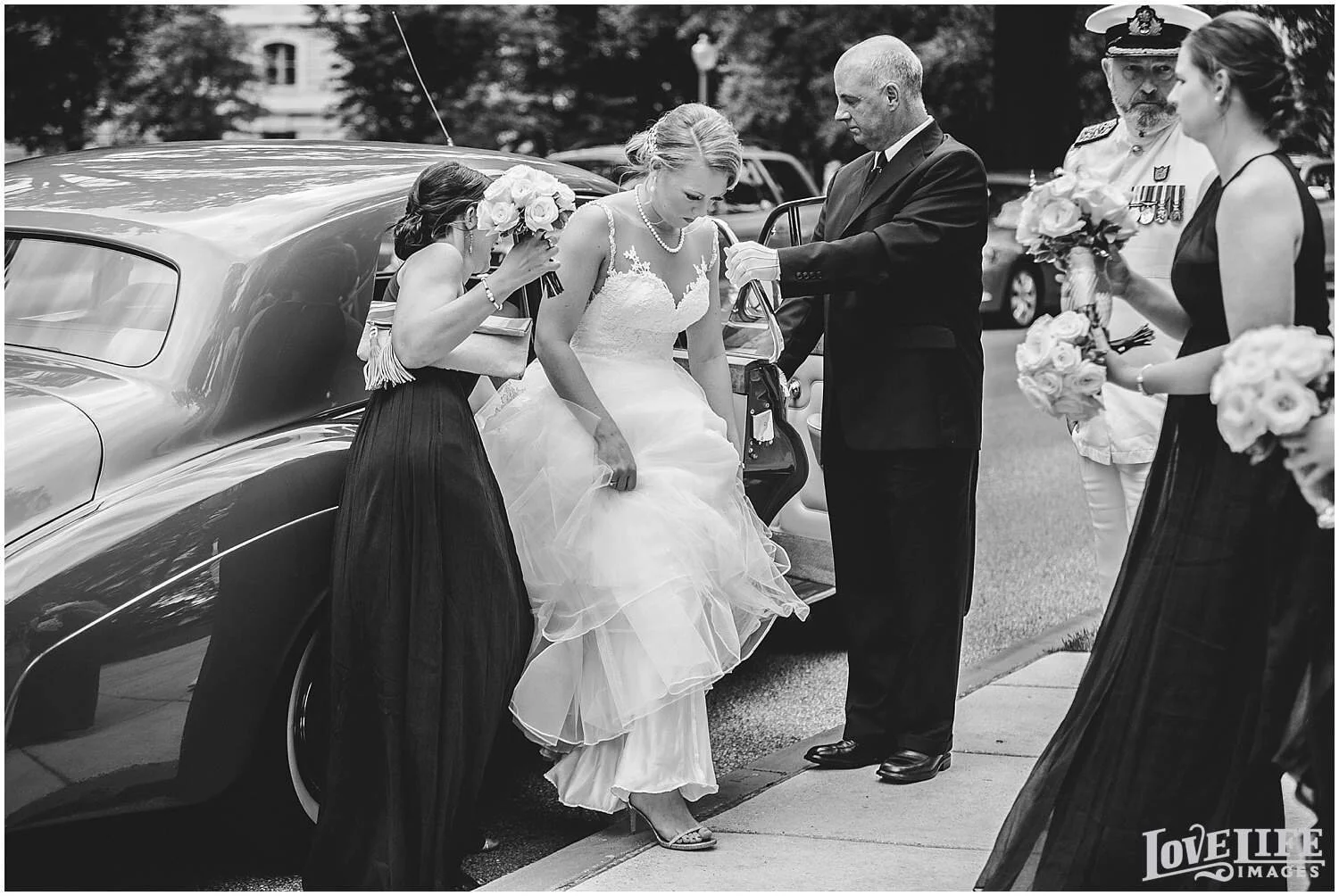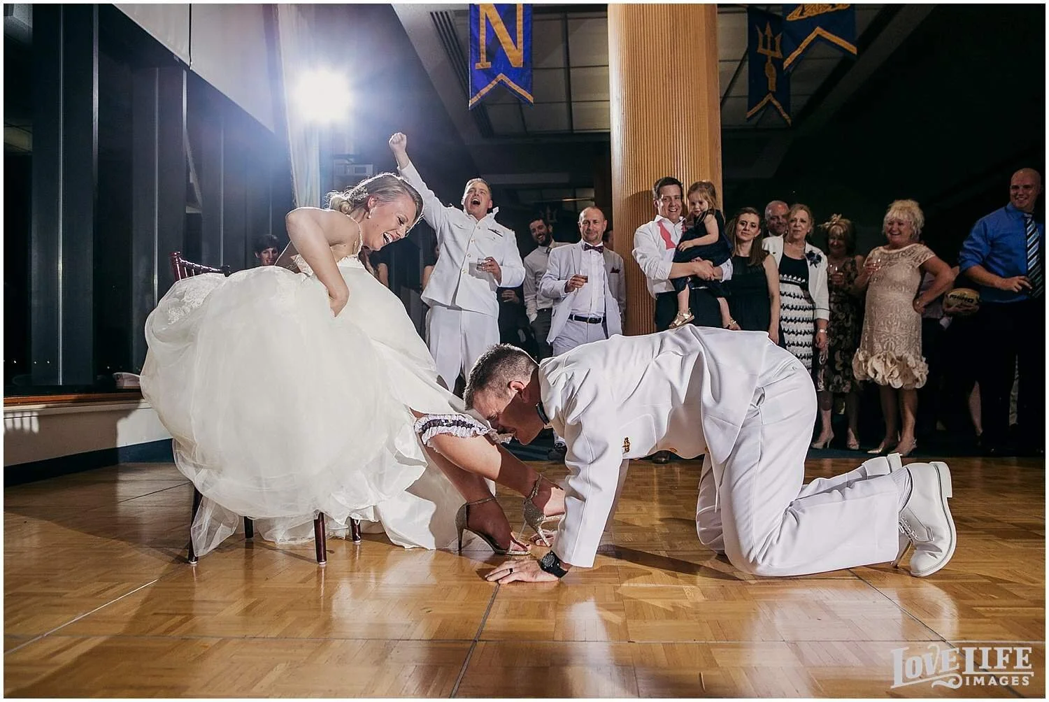 This lovely couple wanted to have a private moment before their nuptials but did not want to do a first-look. After they both finished getting ready, Kevin came to the door in the basement of the Naval Academy Chapel where Rebecca anxiously waited. They each stood on one side of the door, holding hands just to feel the closeness of each other before heading to the alter.
